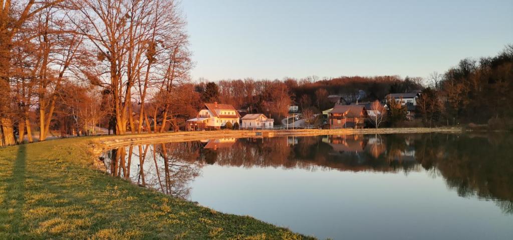 V pritličju je dnevni prostor, jedilnica in kuhinja, ki so med seboj povezani, kopalnica ter spalnica. V mansardi pa sta dve sobi-spalnici, WC in velika terasa s čudovitim razgledom in še lepšimi sončnimi zahodi, ko se sonce utaplja v gladini bližnjega ribnika.