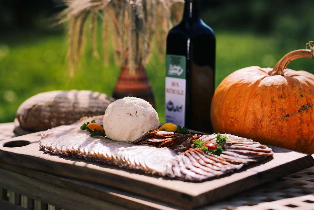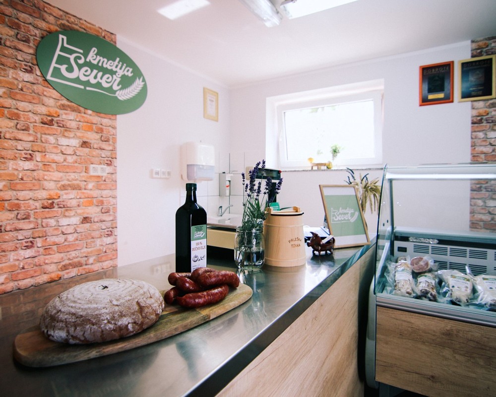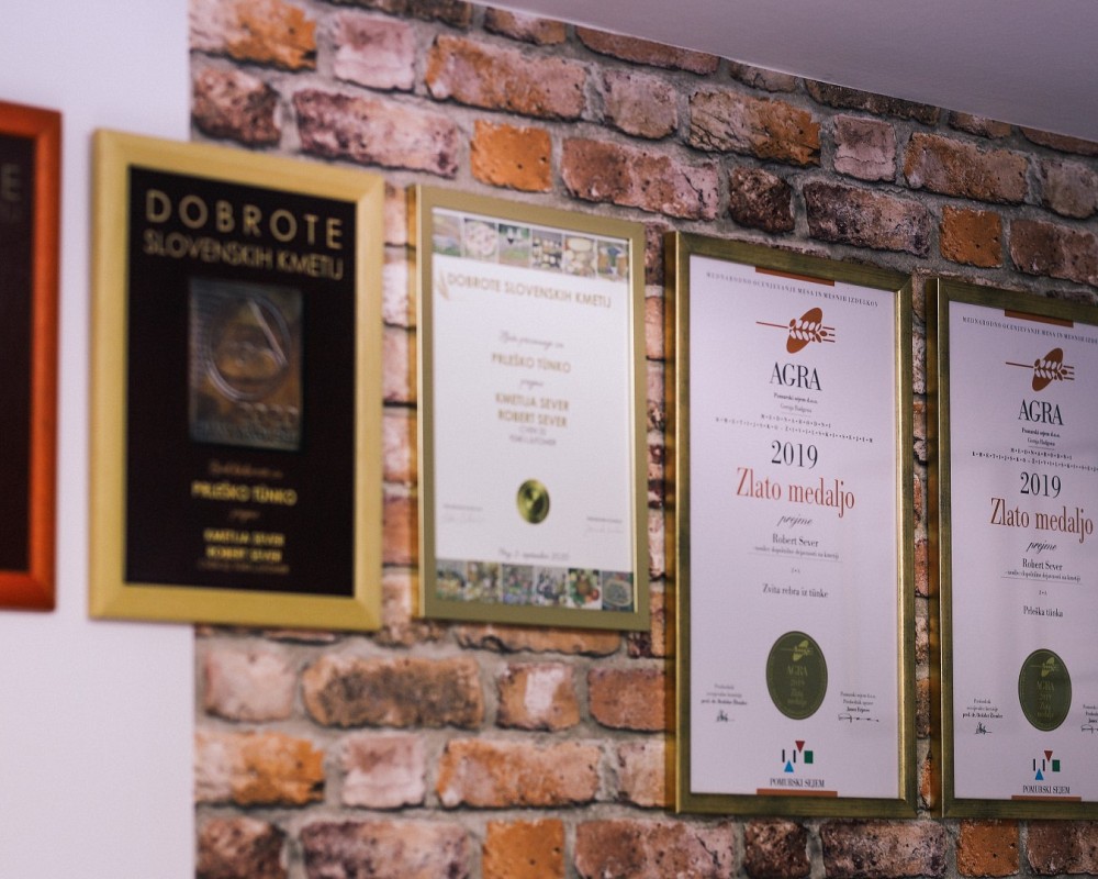 Auf dem Bauernhof Sever rühmt man sich mit einer langen Tradition in der Tierhaltung und Fleischverarbeitung. Sie sind jedoch auch in der Landwirtschaft und im Weinbau tätig. Sie bieten eine Vielzahl von hausgemachten Produkten an und sind am bekanntesten für ihre Prleška tünka, für die sie auch ein Zertifikat haben. Sie bemühen sich, es dem Geschmack nach, so nahe wie möglich der in der Vergangenheit hergestellten Prleška tünka zu bringen. Sie salzen und räuchern daher die Tünka auf die alte traditionelle Weise und backen sie im Kachelofen, wie es früher der Brauch war. Außerdem ist ihre Tünka nitratfrei und nur mit Meersalz gesalzen. Ihre Spezialität ist das Produkt aus verdrehten Rippen oder "Zavec", das Sie sonst nirgendwo finden werden, da es sich um eine sehr alte Bauerntradition handelt, die auf dem Bauernhof Sever wiederbelebt wurde und das Produkt äußerst beliebt ist. Sie nehmen am Wettbewerb „Dobrote slovenskih kmetij“ (Köstlichkeiten der slowenischen Bauernhöfe) teil, bei dem sie mit mehreren Goldpreisen auch das erste Qualitätszeichen in Pomurje erhalten haben. Auch bei der internationalen Bewertung auf der AGRA-Messe erhielten sie zwei Goldpreise für die Prleška tünka und für die verdrehten Rippen. Sie stellen auch ihr eigenes Kürbiskernöl her.