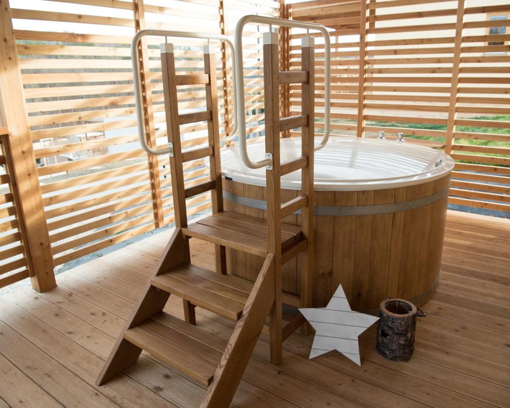 Sauna (gemeinschaftlich im Thermalpark und individuell im Glamping-Dorf)
