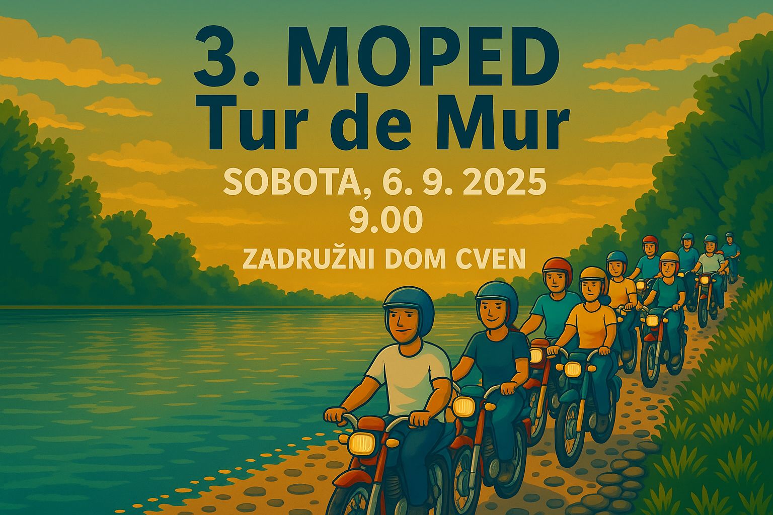 Srečali se bomo v soboto, 6. 9. 2025, ob 9. uri pri zadružnem domu na Cvenu! Vabljeni vsi mopedi!