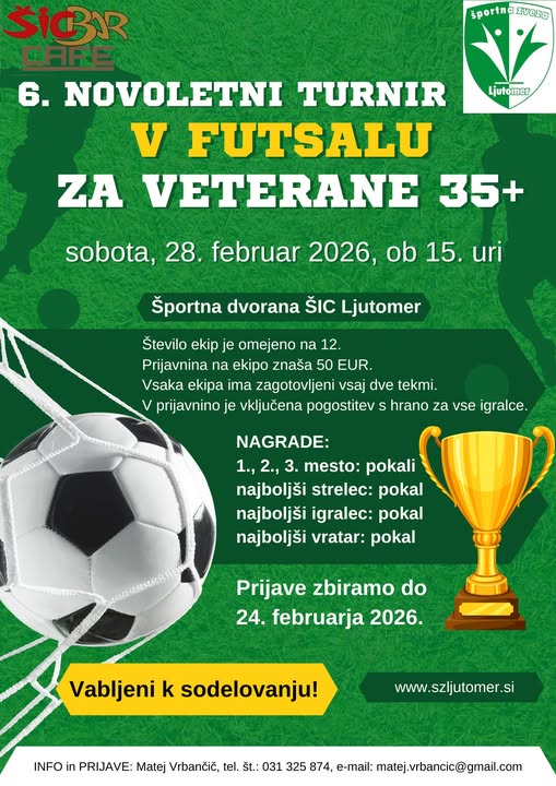 Veteranski turnir, ki bi moral biti 14.02.2026 bo odigran v soboto 28.02.2026.