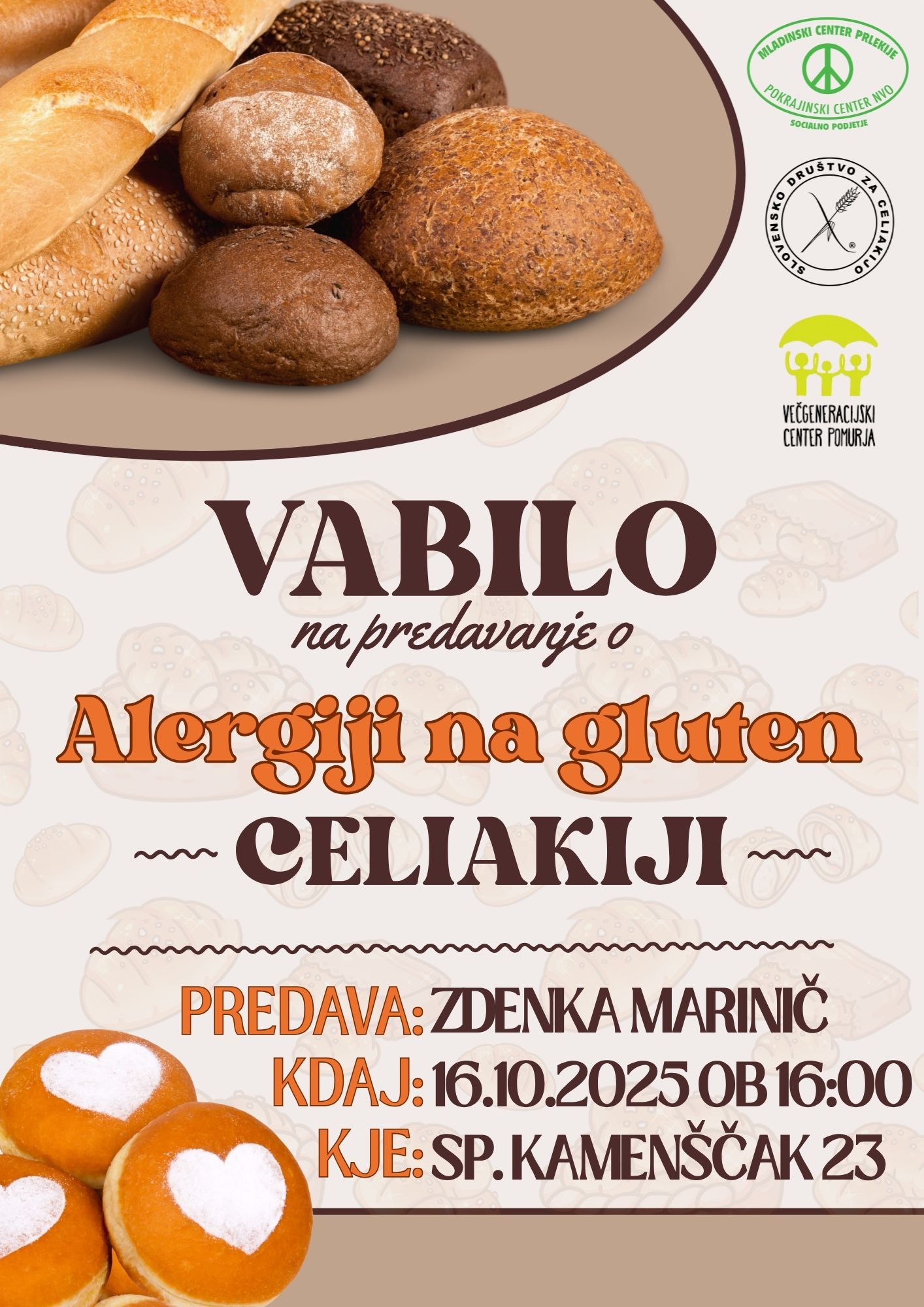 Vabimo vas na zanimivo brezplačno predavanje v Mladinski center Prlekije, kjer bomo spregovorili o glutenu in razjasnili razliko med alergijo, intoleranco in celiakijo.