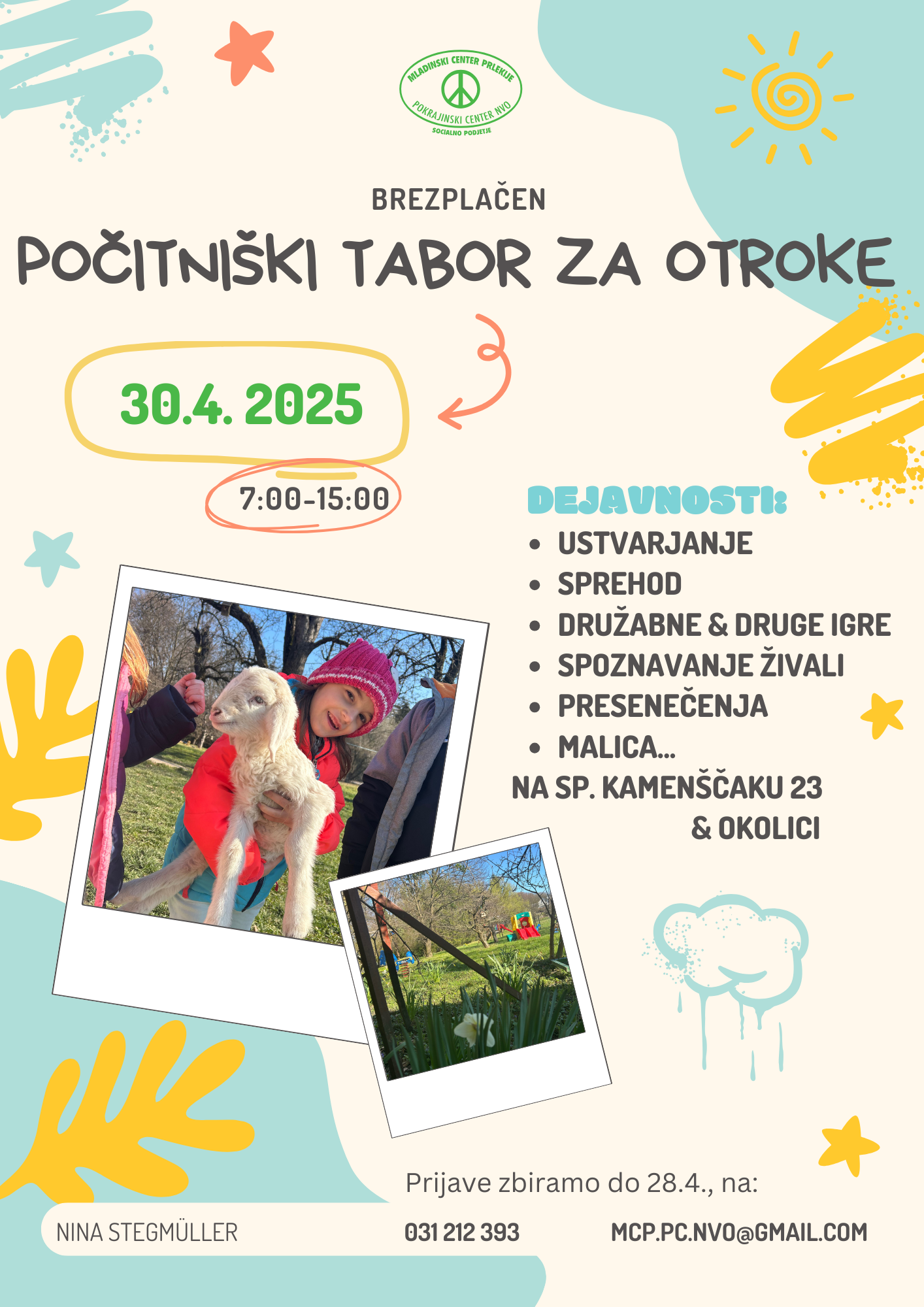 Prosimo prijavite otroke do 28.4 - pokličite 031 212 393 / mcp.pc.nvo@gmail.com . :) Za najmlajše bomo pripravili urice, kjer bodo imeli priložnost raziskovati naravo, ustvarjati in se učiti o pomladi skozi zabavne aktivnosti.
