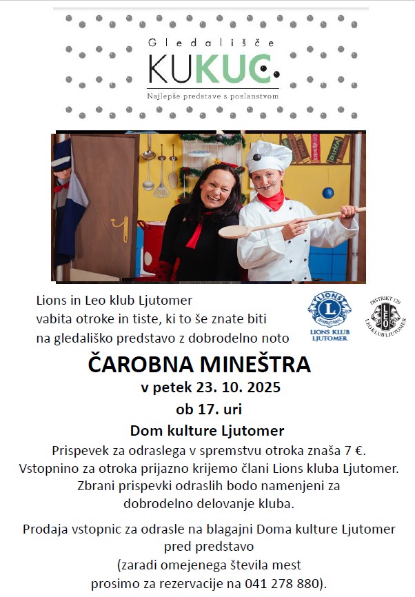 Lions in Leo klub Ljutomer vabita otroke in vse, ki znate ohraniti otroško veselje, na prav posebno gledališko doživetje – predstavo ČAROBNA MINEŠTRA.