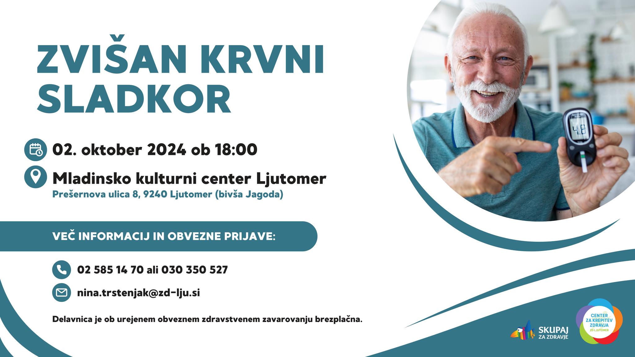 Vabimo vas v učno delavnico ZVIŠAN KRVNI SLADKOR, ki bo v sredo, 3. oktobra 2024, ob 18:00 v Mladinsko kulturnem centru Ljutomer.