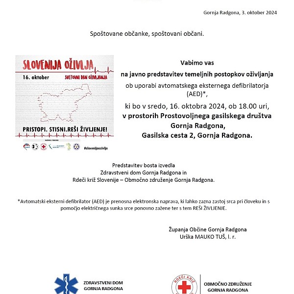 Javna predstavitev temeljnih postopkov oživljanja
