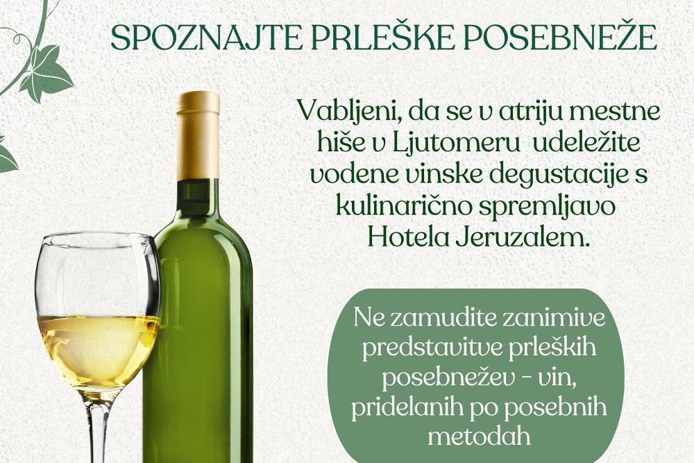 Vabljeni, da se v atriju mestne hiše v Ljutomeru udeležite vodene vinske degustacije s kulinarično spremljavo Hotela Jeruzalem.