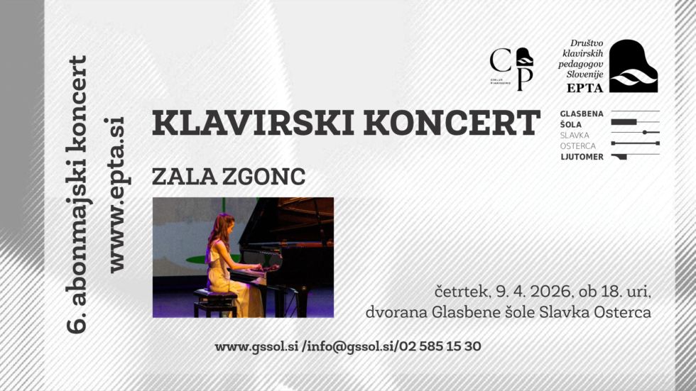Vabljeni na klavirski koncert, ki bo 9. 4. 2026 ob 18. uri v dvorani Glasbene šole Slavka Osterca.