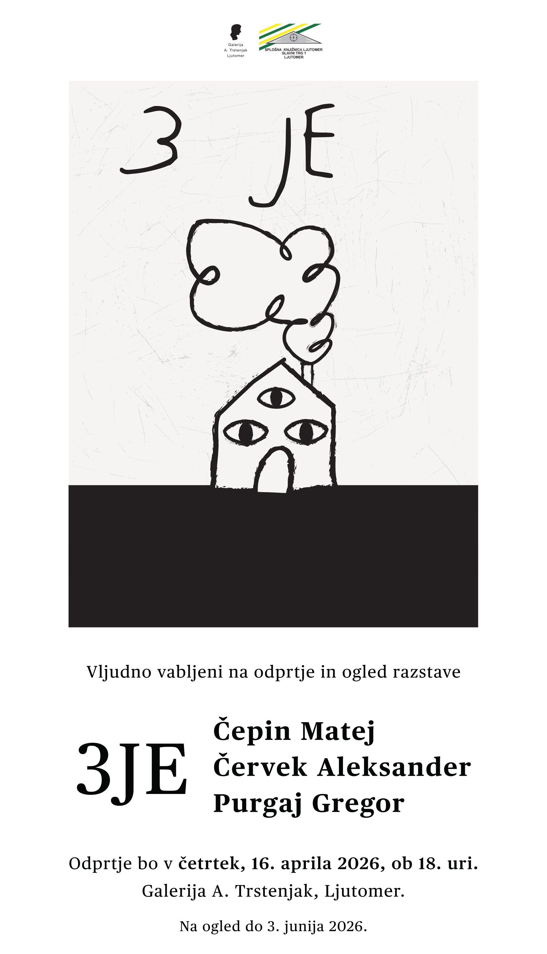 Vabljeni na odprtje in ogled razstave "3JE" - Čepin Matej, Červek Aleksander, Purgaj Gregor