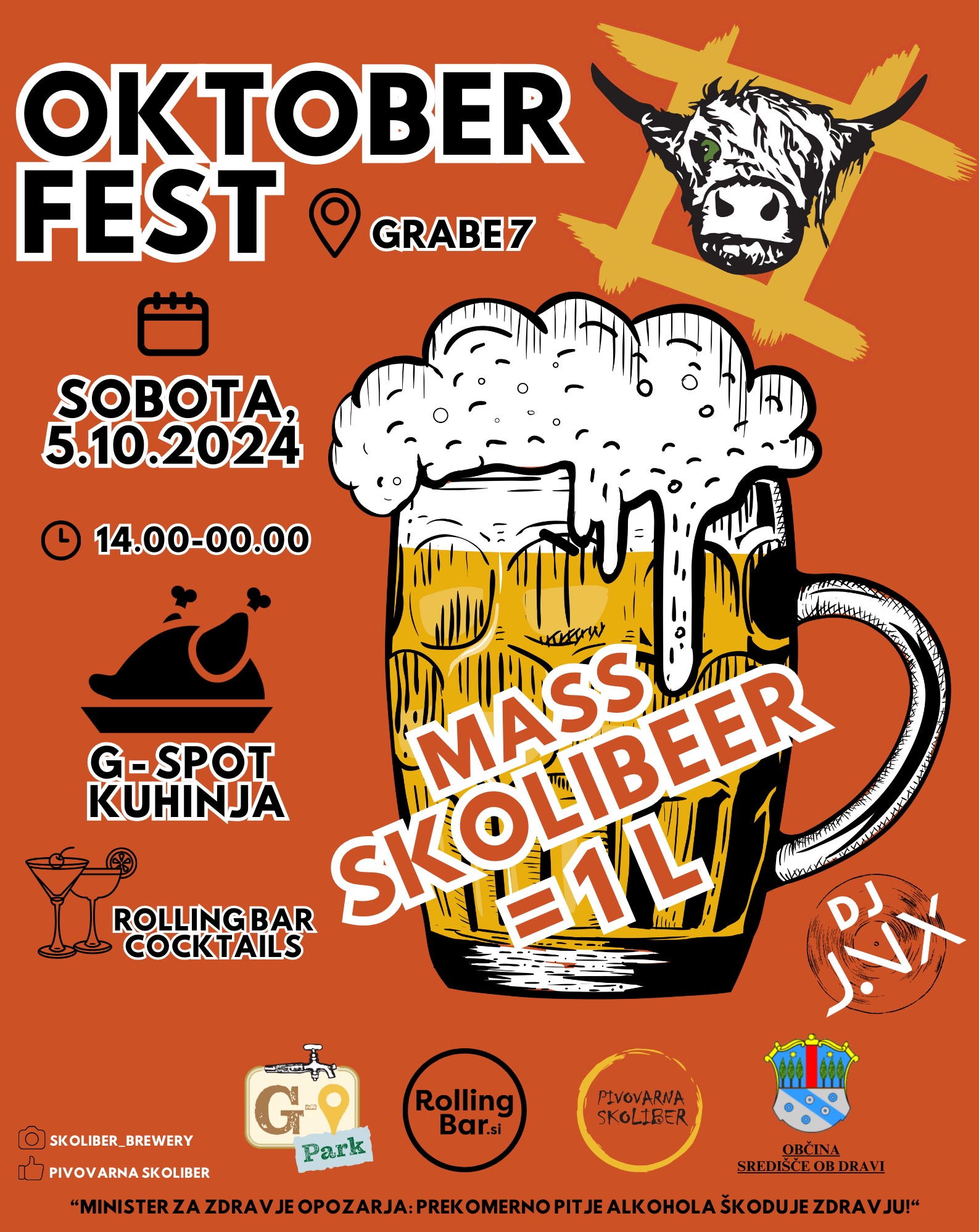 Vljudno vabljeni na prvi oktoberfest Pivovarne Skoliber, ki bo 5. oktobra 2024, s pričetkom ob 14. uri. Dogodek bo na Grabah 7, Središče ob Dravi.