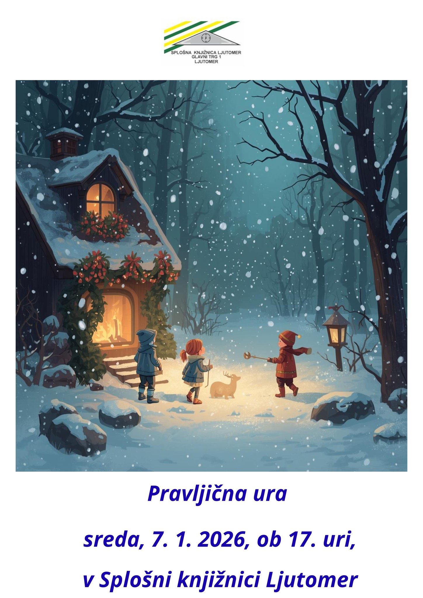 Lepo vabljeni na pravljične urice, ki bodo potekale 7. 1. 2026 ob 17. uri v Splošni knjižnici Ljutomer.