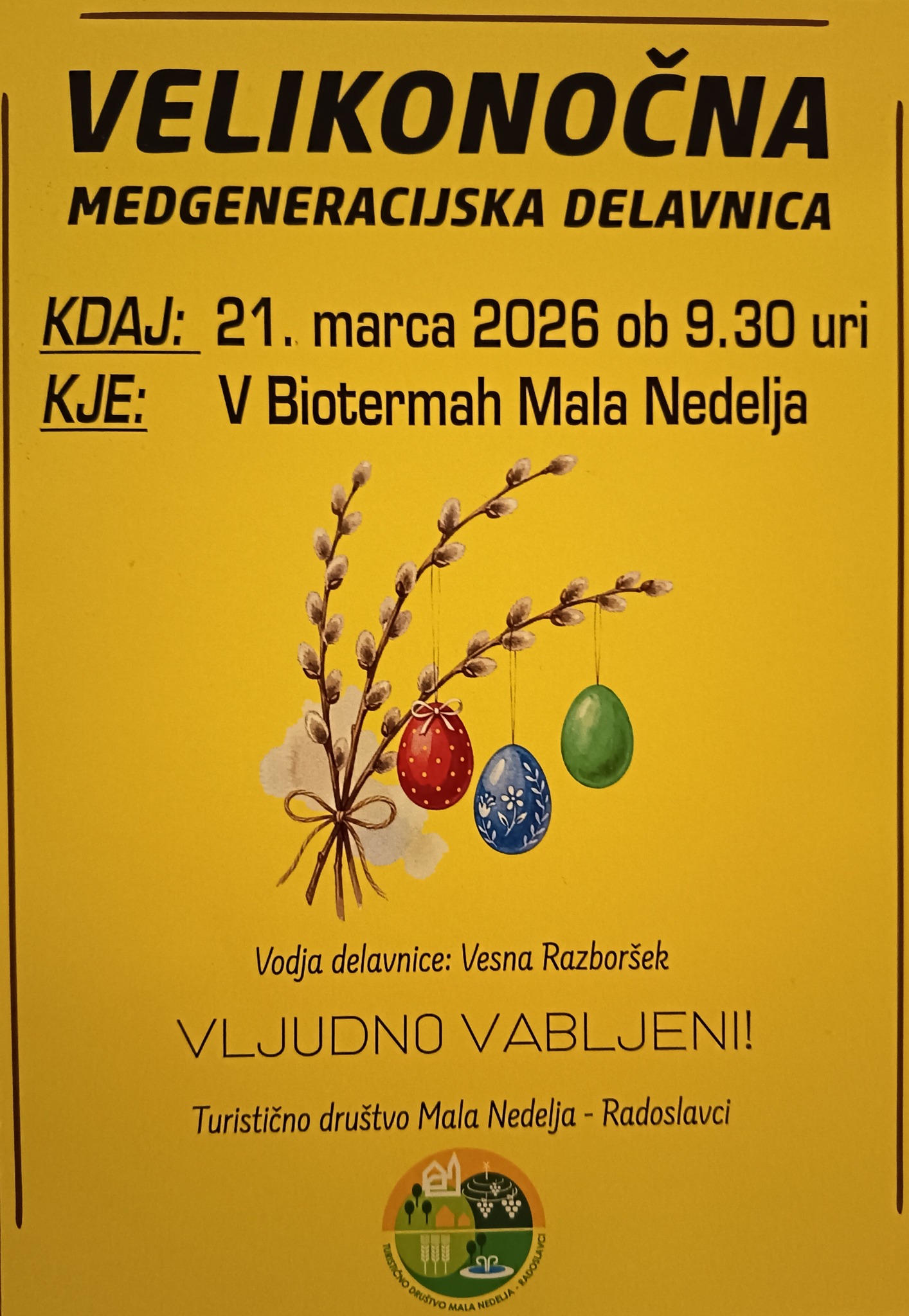 Vabljeni na velikonočno delavnico, ki bo 21. marca 2026 ob 9.30 v Biotermah Mala Nedelja.