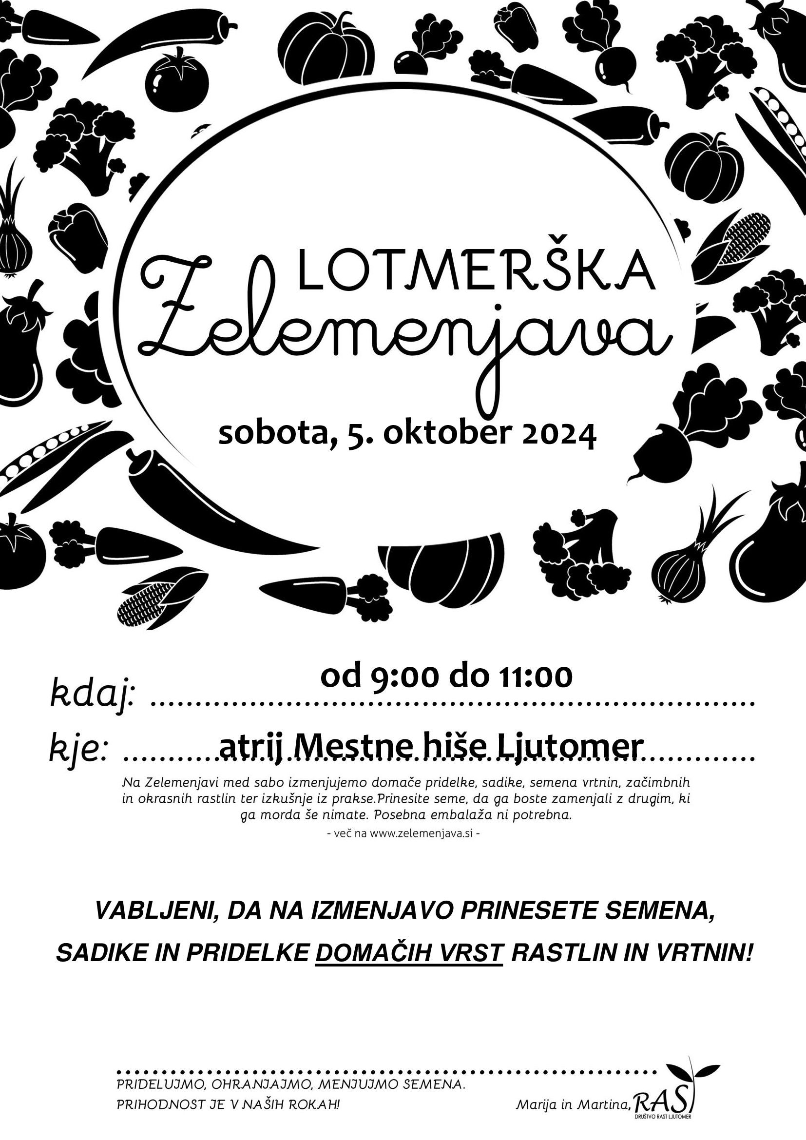 Vabljeni na ZELEMENJAVO, to je izmenjavo sadik in semen, ki bo v soboto, 5. 10. 2024 med 9. in 11. uro v atriju mestne hiše Ljutomer.