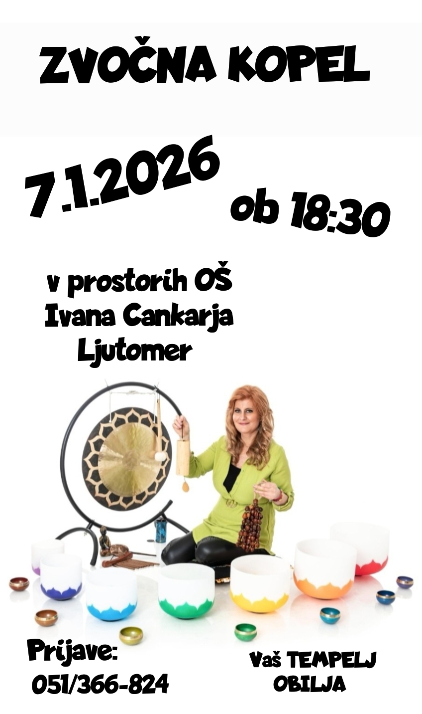 Vabljeni na zvočno kopel, ki bo 7. 1. 2026 ob 18.30 v prostorih OŠ Ivana Cankarja Ljutomer.
