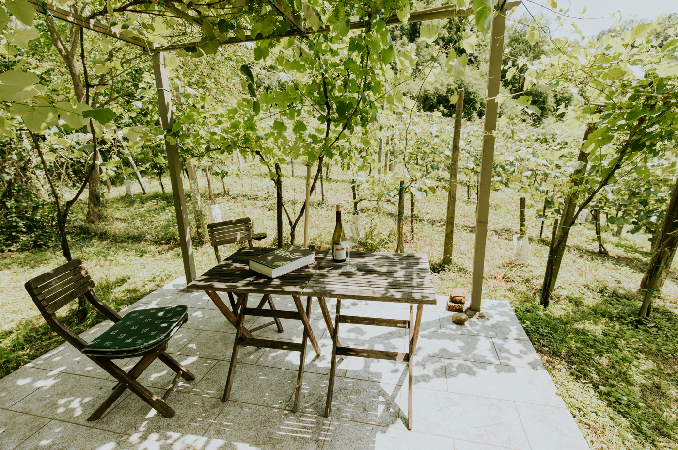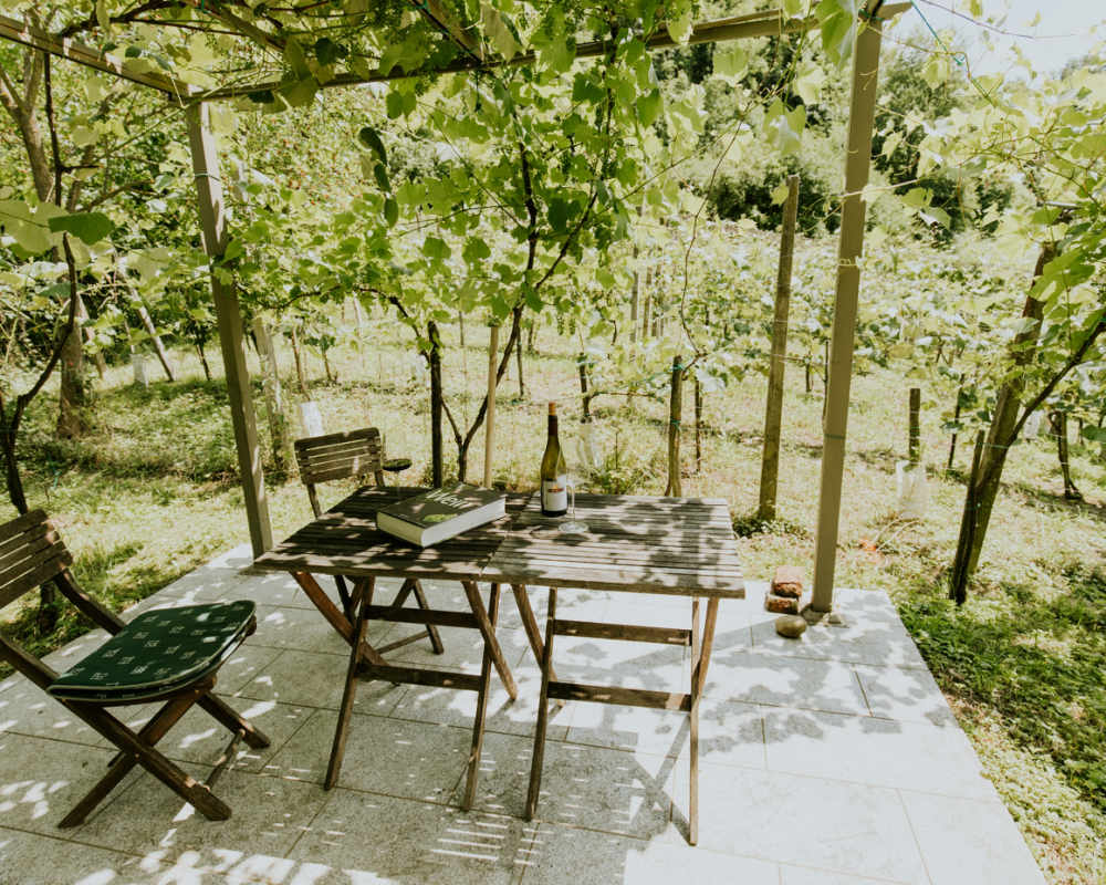 V čudovitem naravnem okolju smo zgradili hišico, ki ponuja edinstveno namestitev za posamezne goste ali manjše skupine. Primerna je za vse, ki želijo raziskati območje peš ali s kolesom in preprosto uživati v tišini med vinogradi. Lokacija namestitve je super izhodišče za pohodništvo, kolesarjenje, oddih ali skupinsko delavnico - v koči je priložnost za degustacijo vin. Poskusite našo lastno eksperimentalno kapljico "Troubadour", ekološko pridelano in brez pesticidov. Menimo, da gresta vino in umetnost dobro skupaj. Verjamemo, da boste uživali. Hiša je staro vinogradniško posestvo, ki je bilo obnovljeno in opremljeno z občutkom za dizajn. Vsaka od štirih sob in vinogradnikova hiša so edinstvene, polne čarobnosti in lepote ter pripovedujejo zgodbe s čudovitimi umetniškimi deli z vsega sveta. Doživite življenje, obdano z vinsko trto in drevesi, lesenimi skulpturami in umetnostjo. Morda boste zbirko dopolnili tudi vi. Prisrčno dobrodošli!