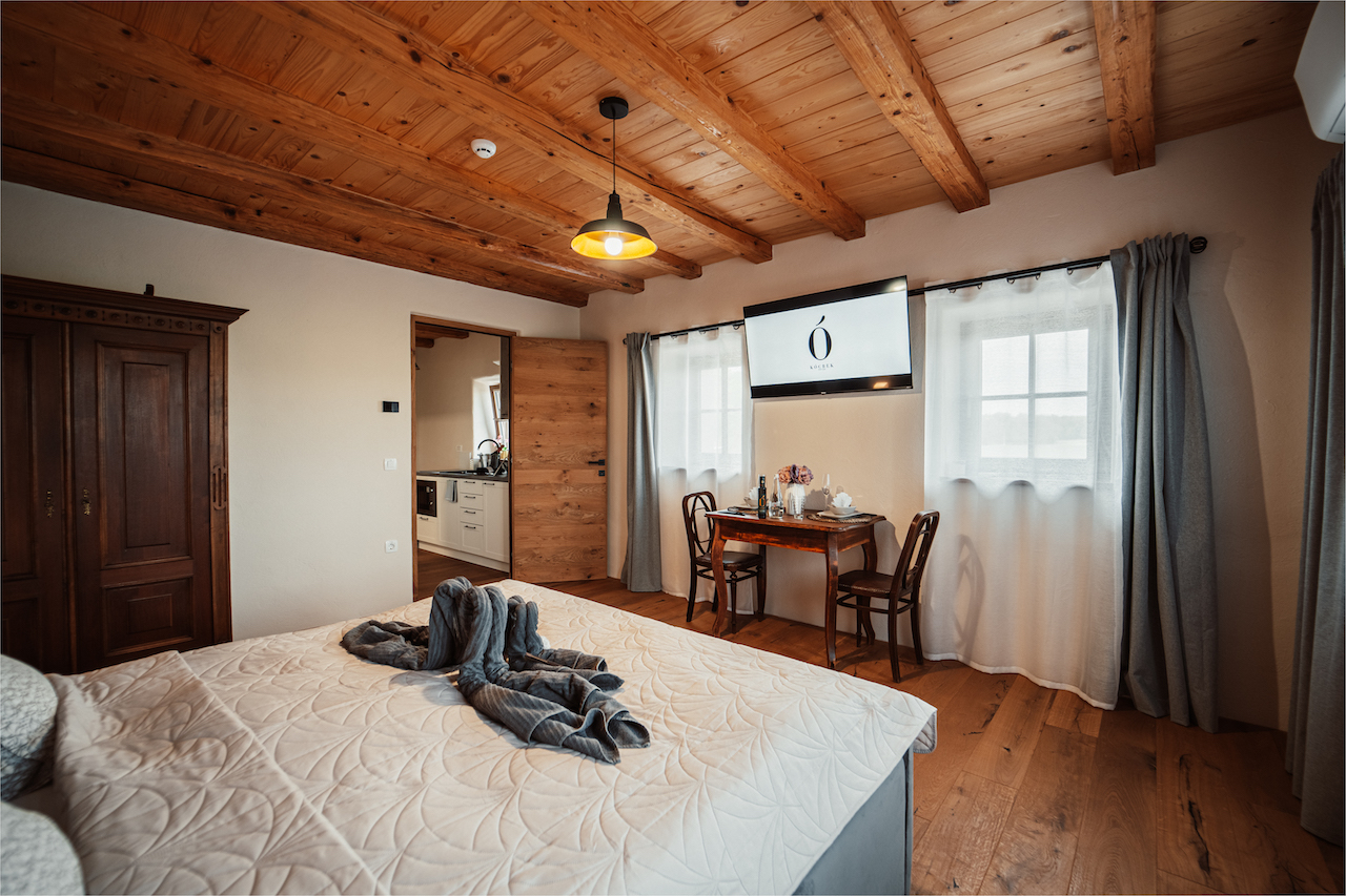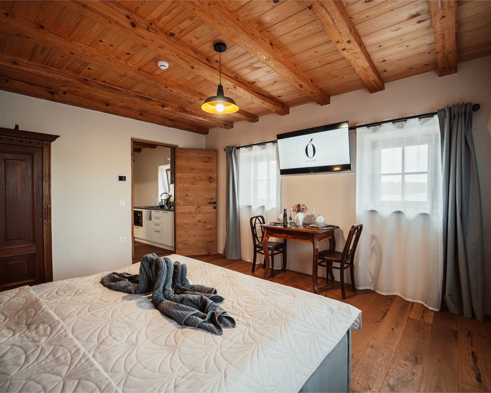 The Kocbek homestead in the heart of Prlekija offers you a haven of peace and relaxation. The accommodation in the middle of pristine nature will entice you with the smell of pumpkin seed oil. Here, you will be able to relax while looking out over the swimming pond surrounded by the family forest, and you may catch a glimpse of the deer grazing or of our other animal inhabitants.