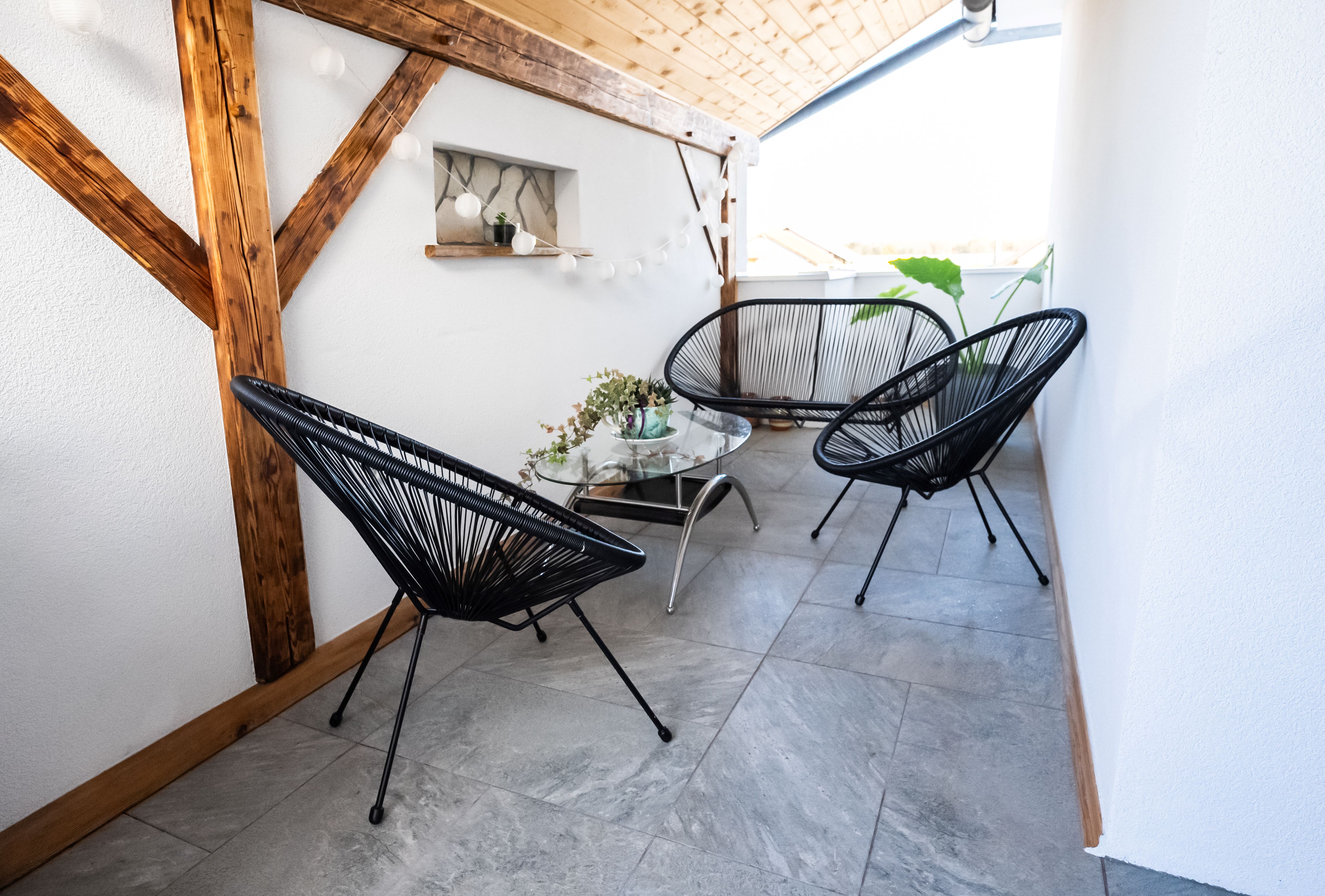 Lastno teraso z mizico in stoli